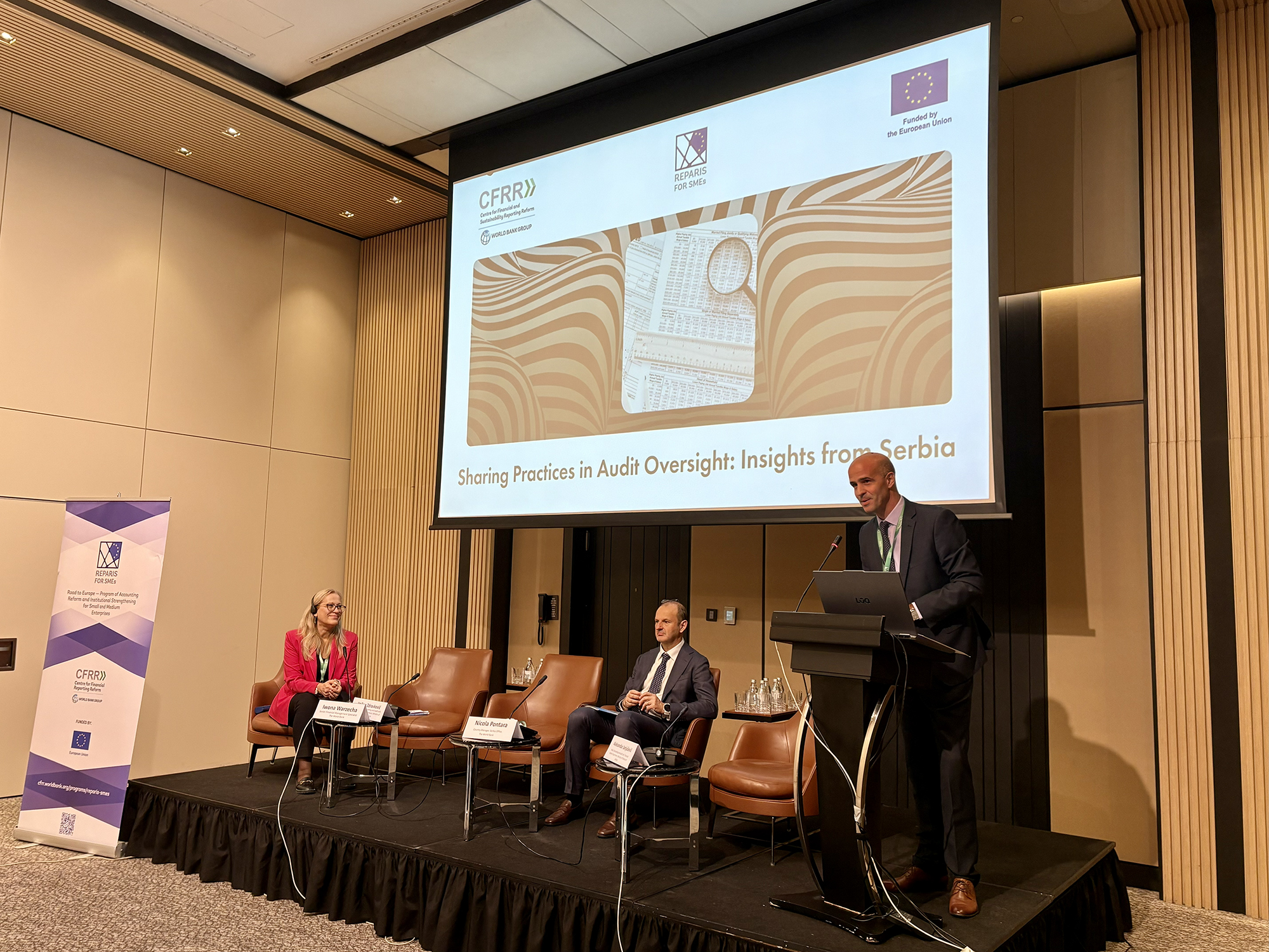 Serbia’s Ministry of Finance and Securities Commission discussed aligning accounting and audit laws with EU directives and regulations. They stressed the importance of integrity, transparency and trust in financial reporting, and described Serbia’s shift to unified, risk-based audit regulation. The speakers also highlighted a strong partnership with the World Bank and regional collaboration for capacity building.